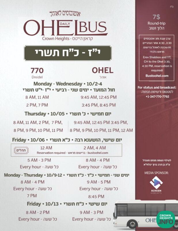 The Ohel Bus Service will be providing extra subsidized transportation round trip from Crown Heights to the Ohel through the end of Tishrei.