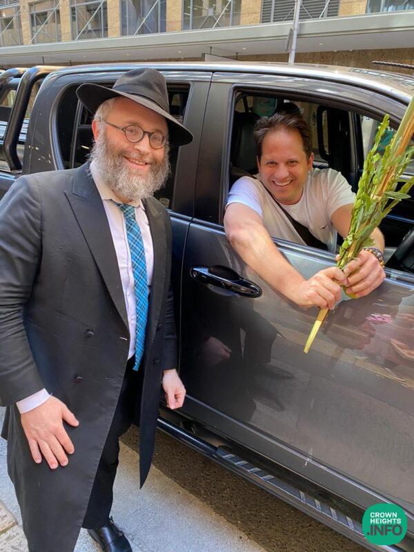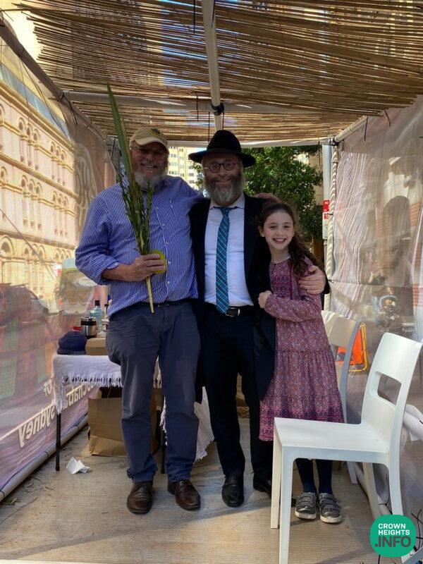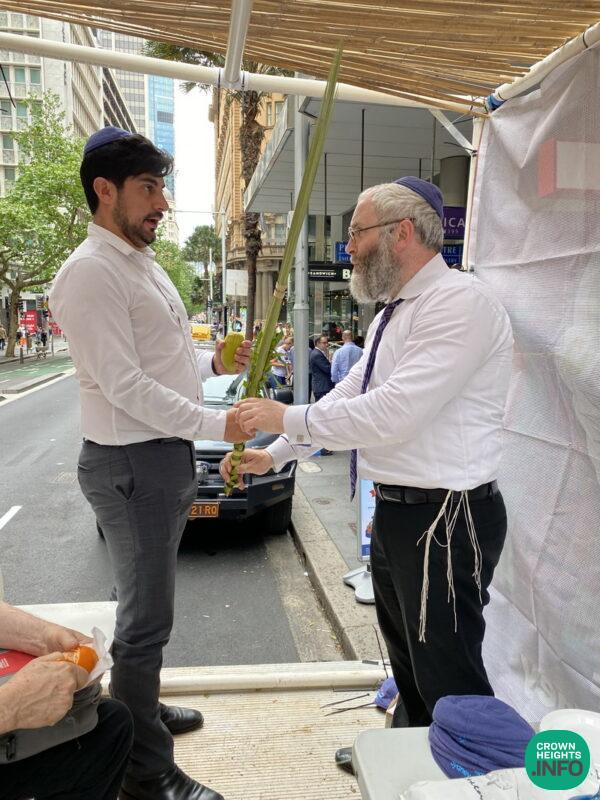 Bringing the joy of Sukkos to residents and workers, they provided the opportunity for people to take their lunch break in the sukkah, enjoy a catered lunch each day and to perform the mitzvah of Lulav and Esrog while some made L’Chaim on a truck, in a Sukkah on some of the busiest most public streets of downtown Sydney.