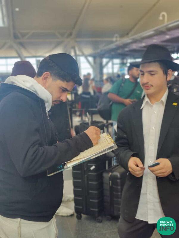 Hundreds of IDF reservists put their lives on hold and headed to JFK Airport in New York City where they were to board chartered flights back to Israel. Before returning to protect their country, Chabad Air gave them the chance to do a mitzvah and purchase a letter in a Sefer Torah.