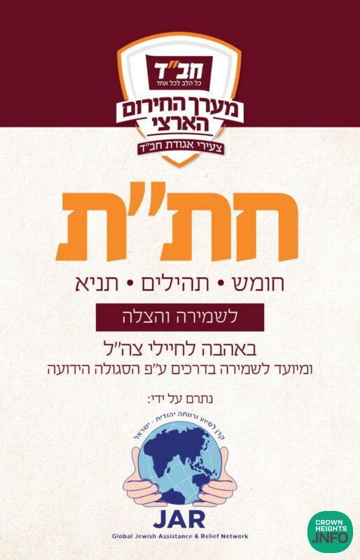 1,000 Chitas and Pushkas already distributed. These are known to provide extra religious protection. The goal is to have one in every army vehicle, and if possible, to every soldier.