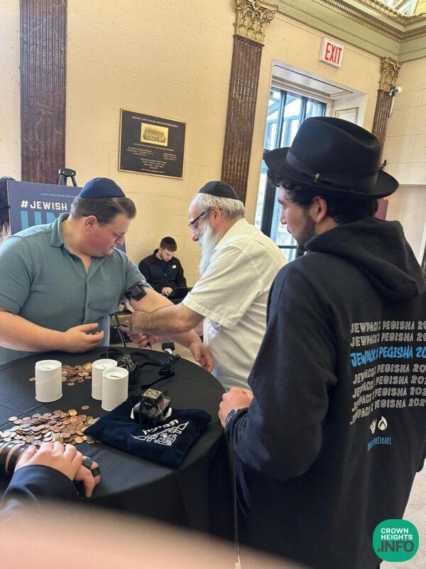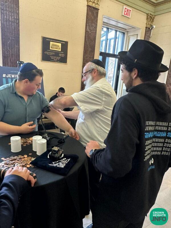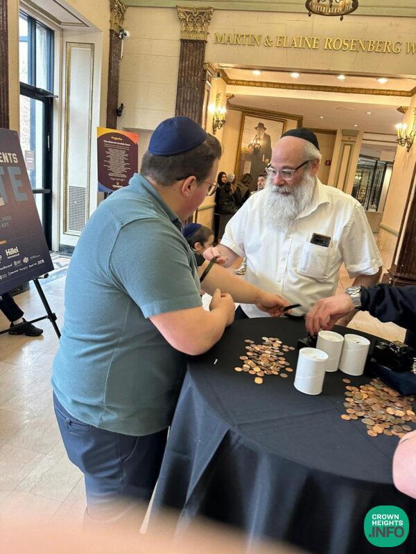 This past Shabbos, as almost 1,200 students spent an uplifting Shabbos in Crown Heights attending the Chabad on Campus International Pegisha, inspiring farbrengens sprung up throughout the neighborhood. At one such gathering, members of R’ Michoel’s minyan gifted two students with pairs of tefillin in exchange for their commitment to putting them on daily.