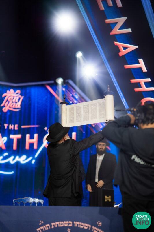 As the night came to a climax, the fathers and Zaidy of several brave Chayolim fighting on the front lines took to the stage to complete the Sefer Torah – the grand mystery SURPRIZE. Following Hagbah, Shloime Daskal and Benny Friedman sang a beautiful rendition of Sisu Visimchu Bisimchas Torah, invigorating us with true Simcha and the feeling that Am Yisroel will prevail!