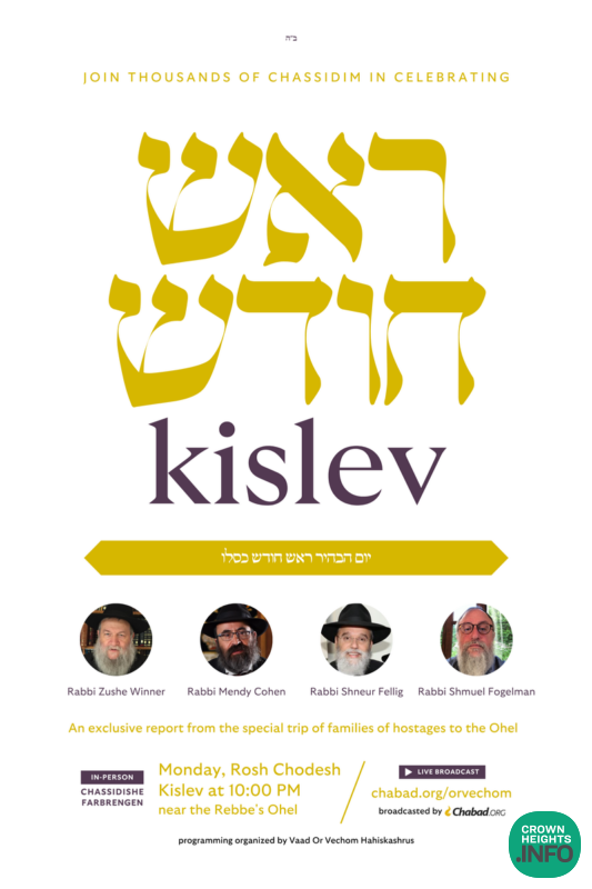 Buses from Crown Heights to the Farbrengen will depart from the Dreidel at 8:30 and 10:00 pm. The Farbrengen will also be broadcasted live at Chabad.org/OrVechom enabling Chassidim around the entire world to join in the celebration.