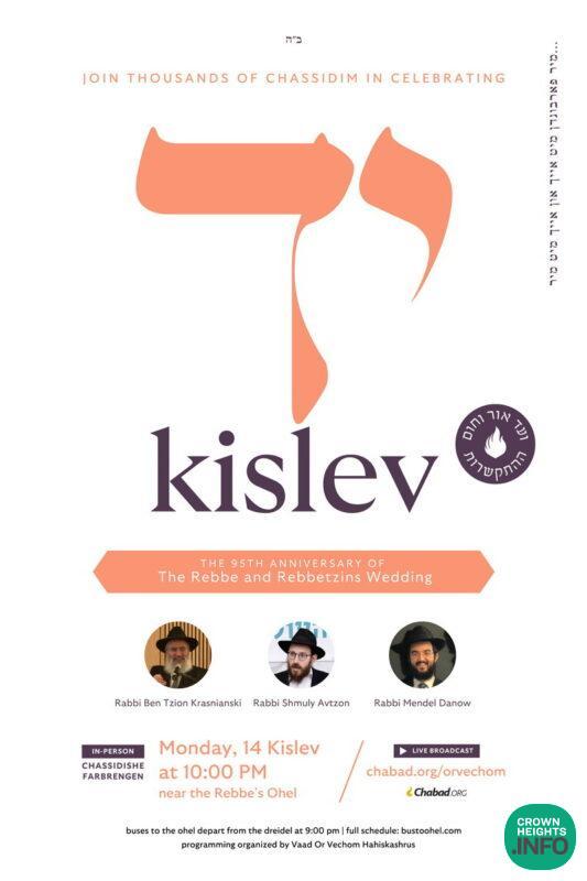 TONIGHT! Don’t miss the central Farbrengen broadcasted live from near the Rebbe’s Ohel to celebrate the Rebbe and Rebbetzin’s 95th wedding anniversary. The in-person Farbrengen will begin tonight at 10:00 PM ET, and can be watched at Chabad.org/OrVechom or below.