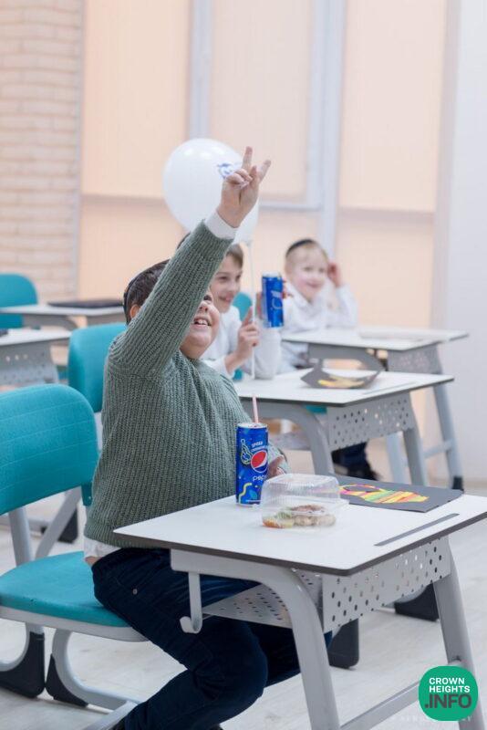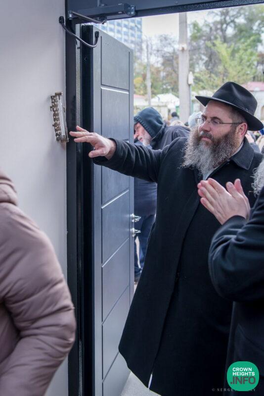 The young students of the first grade were honored with the ribbon-cutting ceremony, and Rabbi Fishel Chichelnitzky affixed the institution’s main Mezuzah.