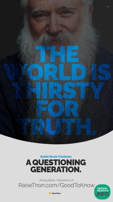 A questioning generation is waiting for guidance. The world is thirsty for truth. Help Rabbi Manis Friedman answer their questions.