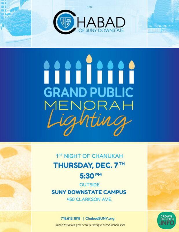 As we do every year, we will be lighting a chabad menora in front of SUNY Downstate campus.