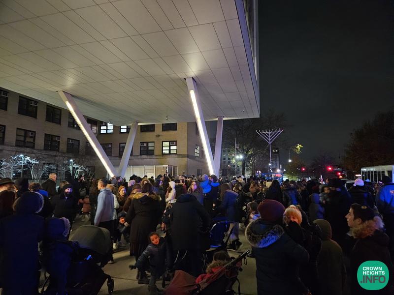 The large crowd came out in part in support for Chabad of SUNY Downstate and the Shliach Rabbi Yoseph Yitzchok Holzman after an anti-Israel panel was advertised at the University to be taking place at the same time as the lighting.