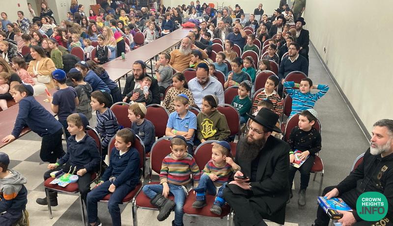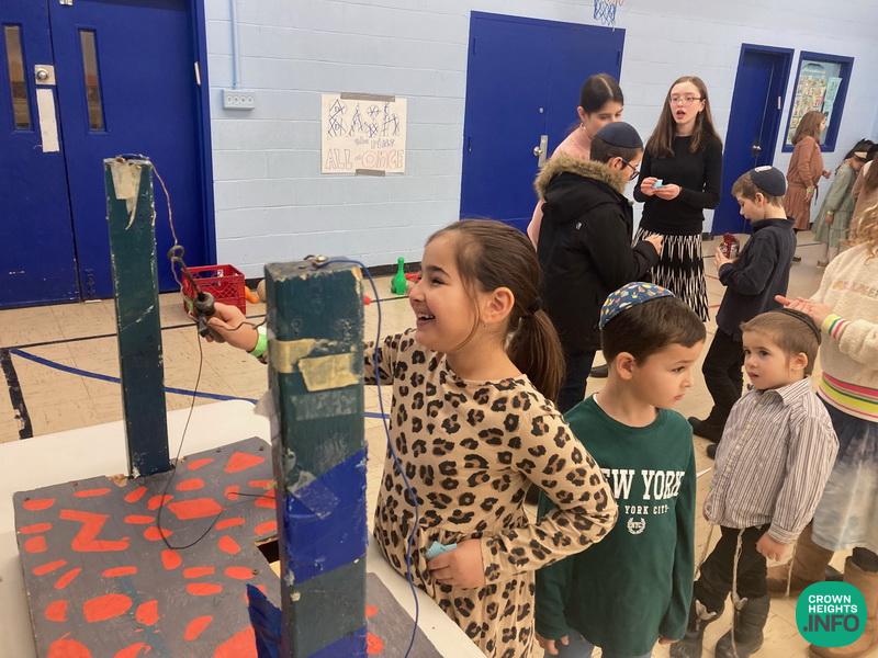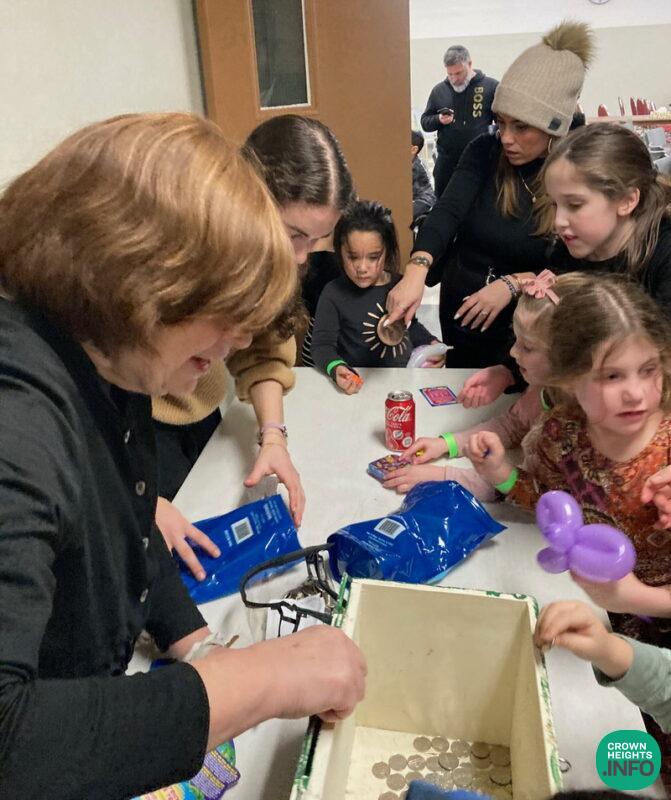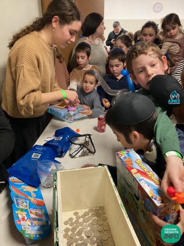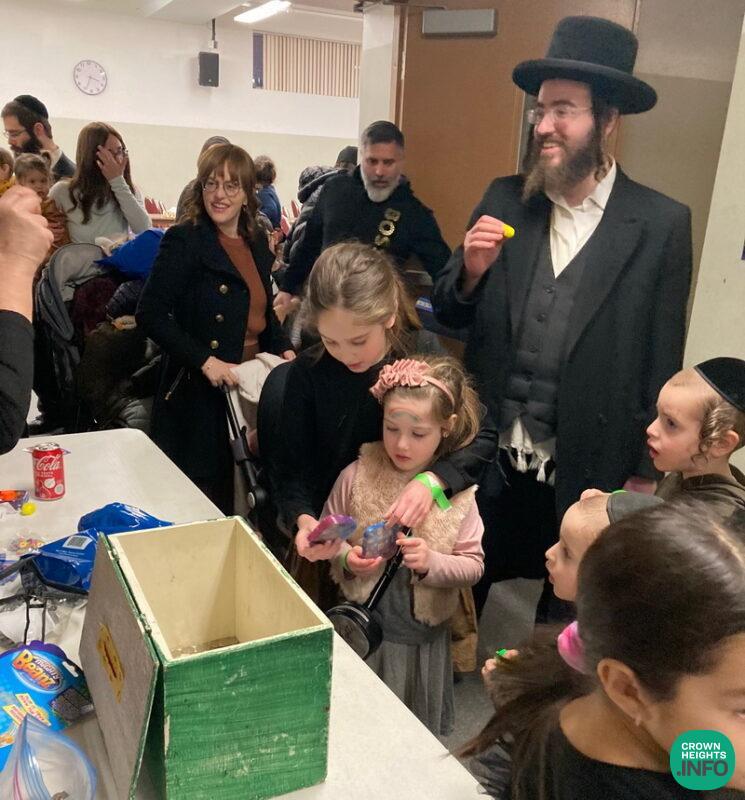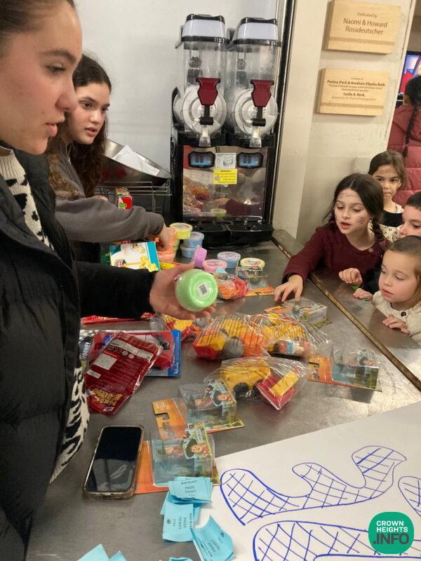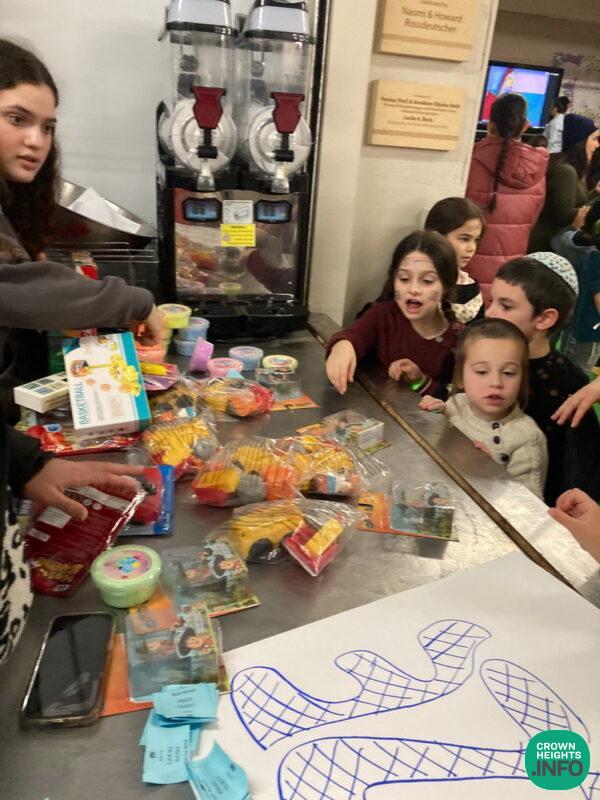 The children recited the Twelve Pesukim and received cotton-candy, dreidels, Chanukah gelt and a coin for Tzedoko. Many prizes were awarded throughout the day.