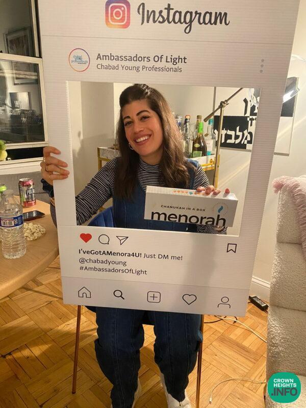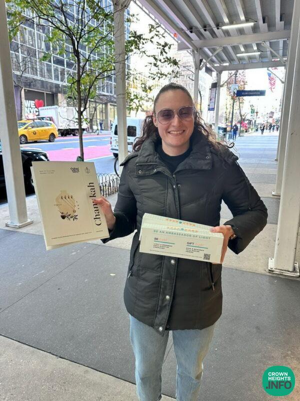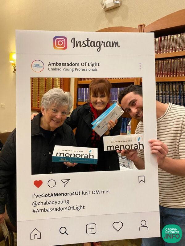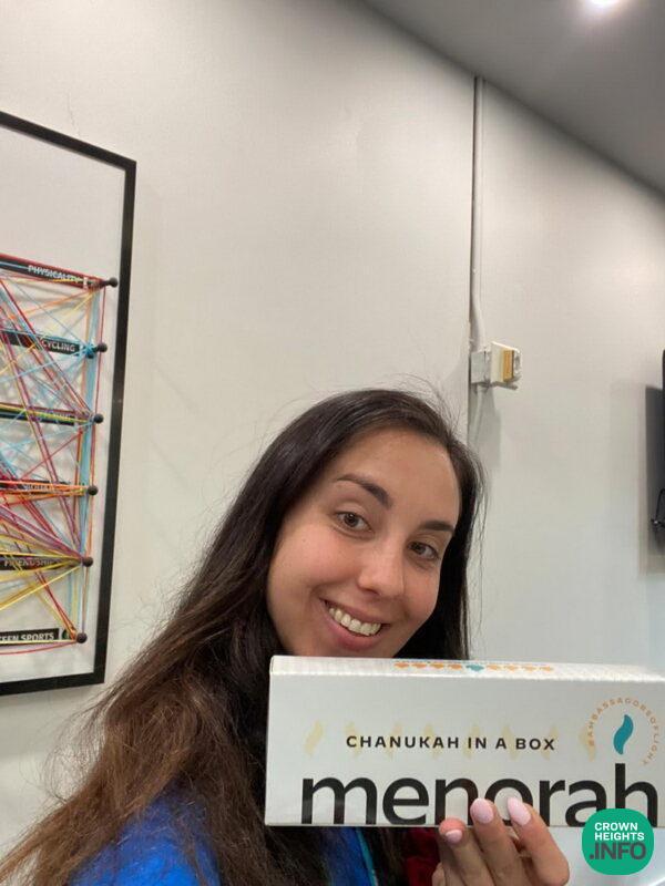 Danah Kirsh, an ambassador from Scottsdale, Arizona, reported how she brought some extra menorahs with her to a volunteering task she does for a local JCC Israel-related effort. There, she successfully secured more ambassadors. “I gave out quite a few menorahs, including one to a woman whose family member just had a baby and is unable to get out and get her own,” she reported on the Ambassadors of Light WhatsApp group.