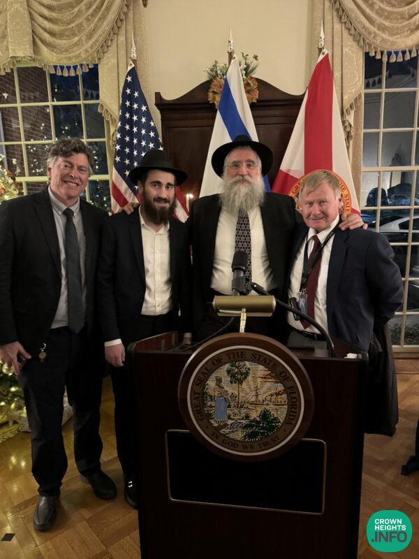 Six Shluchim Join Florida Governor For Chanukah Event at the Governor’s Mansion