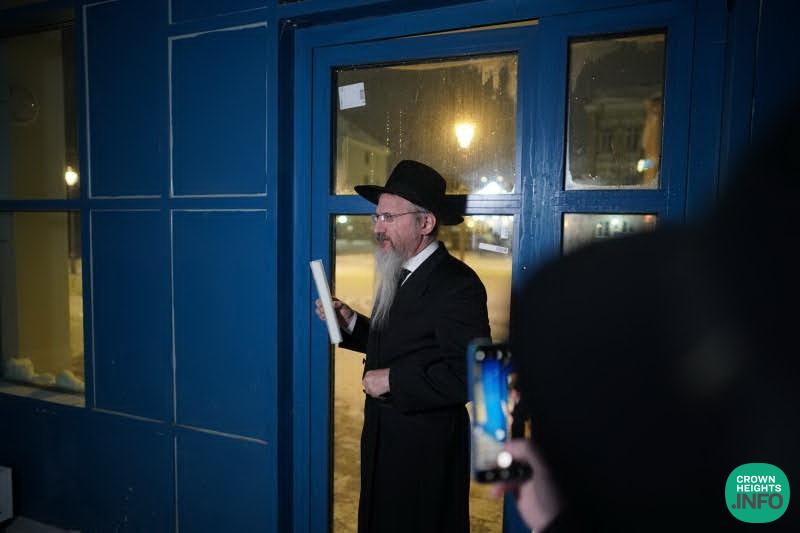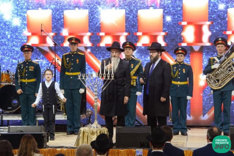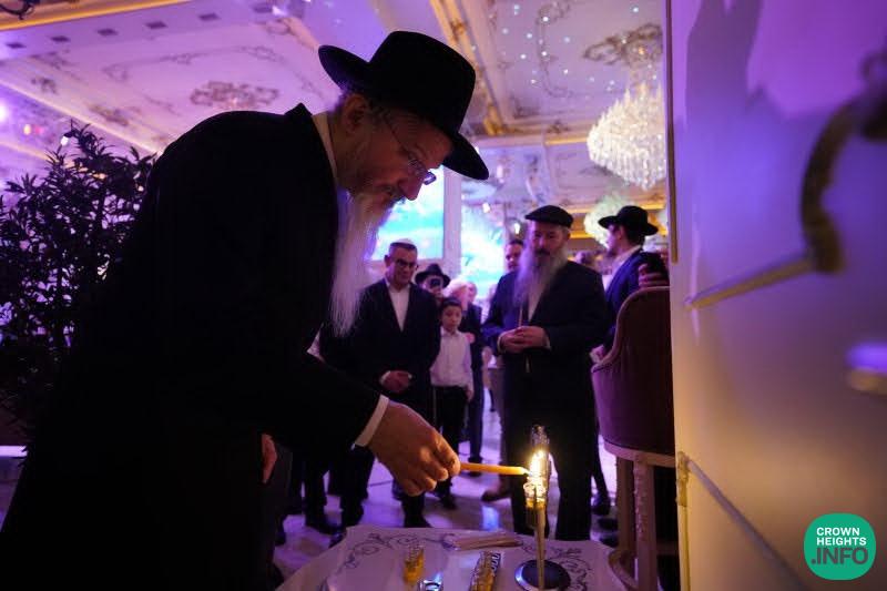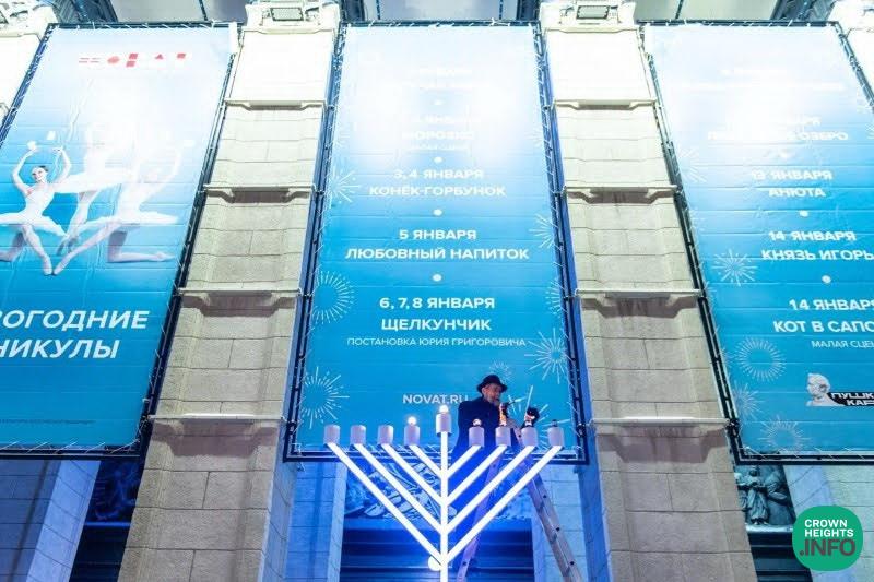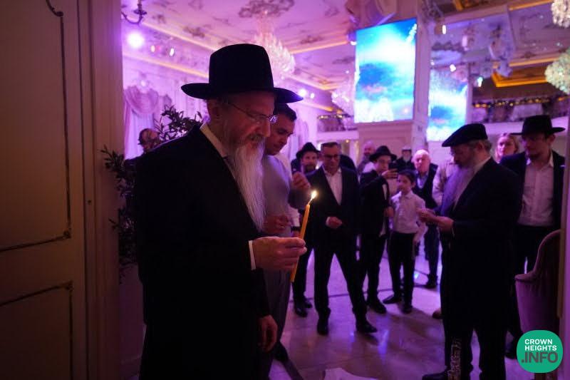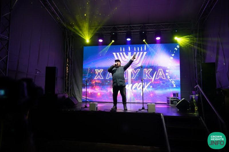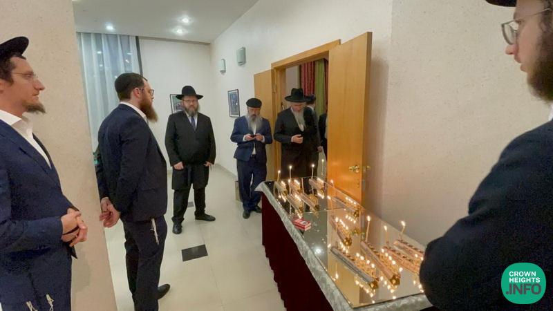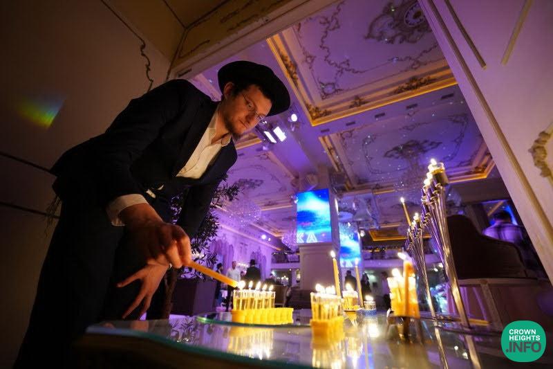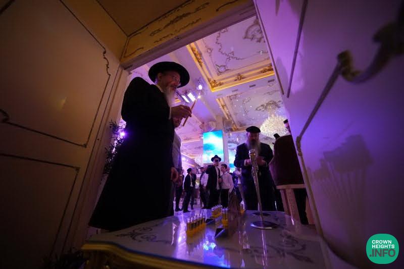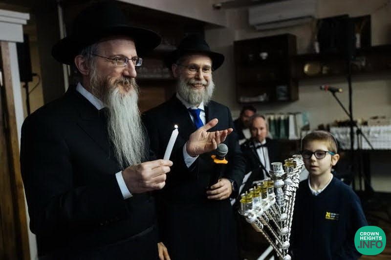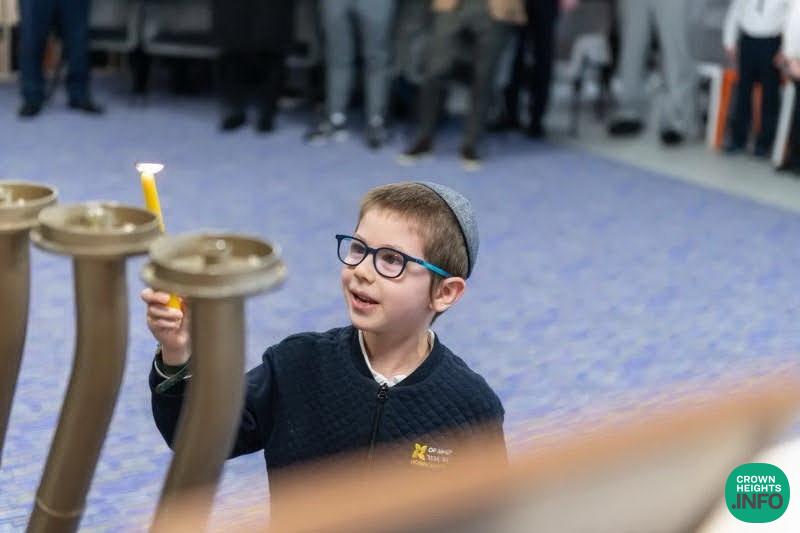 At the conclusion of the event, the entire student and staff body gathered in the school’s courtyard, where a 3-meter menorah had been carved out of ice. Rabbi Lazar was honored to light the candles in the ice menorah, after which he continued to the Beis Menachem shul and community center. There, a Chanukah event for the supporters of the community awaited.