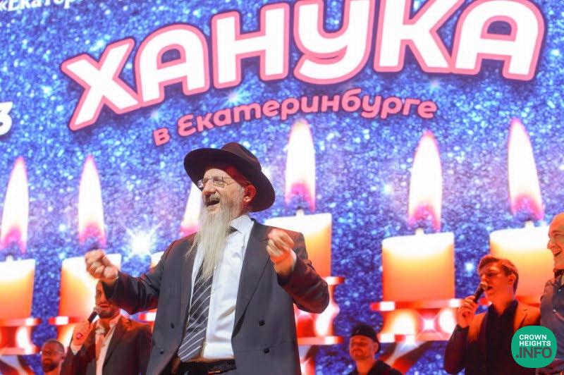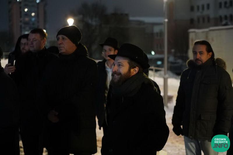 The first stop was the city of Yekaterinburg, capital of the Ural region in Russia. Rabbi Lazar’s visit began with the lighting of the menorah and a Torah address at the grand Chanukah event organized by shliach Rabbi Zelig Ashkenazi. Over 6,000 participants braved the frigid weather, over 30 degrees below zero, to attend the event. Throughout the evening, young shliach Moishy Ashkenazi moved the audience with his rendition of Haneiros Halalu and chassidishe niggunim. Yevgeny Kuyvashev, Governor of Sverdlovsk Oblast, was honored with lighting the shamash candle, and followed with a warm speech with blessings and thanks to the Jewish community. The mayor of Yekaterinburg, Alexey Orlov, also spoke.