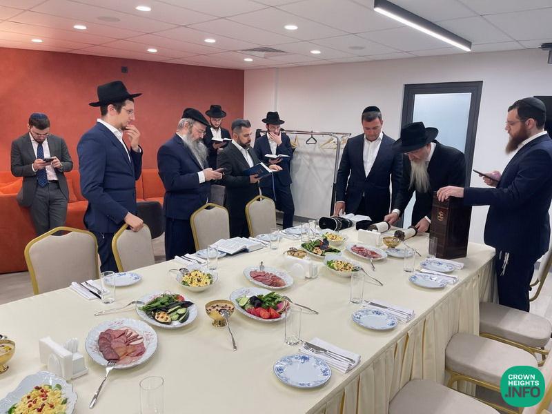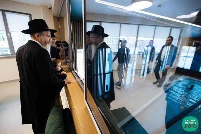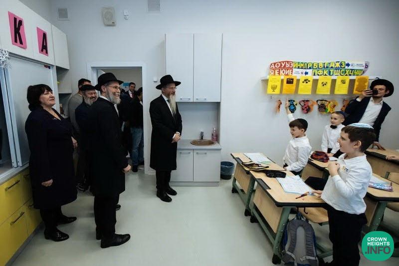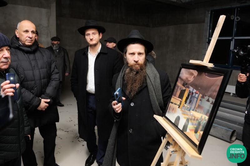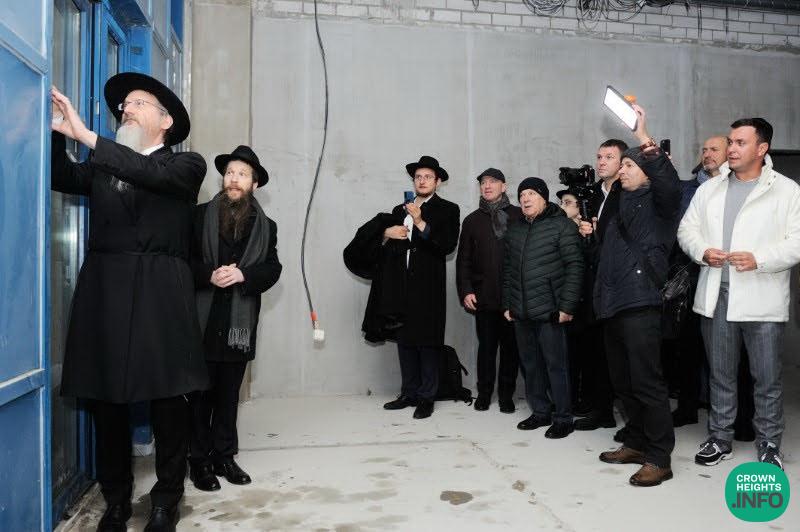 The third stop was in the city of Mogilev in Belarus, to visit the Jewish Center and the large school in the center of the city, which is in the final stages of construction. After the Chief Rabbi was honored to place a mezuzah at the main entrance, a tour was led by the rabbi of the city, Rabbi Menachem Mendel Alperovitz.