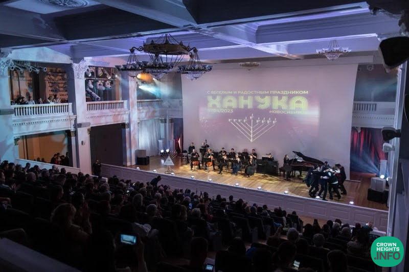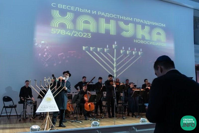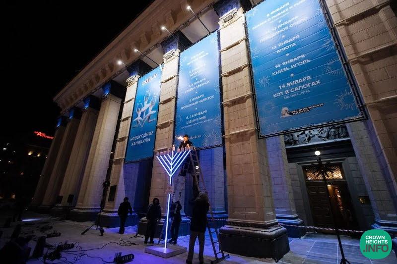 In the evening, a large Chanukah event took place in Novosibirsk’s central opera , with many hundreds of Jews attending. The local school children headlined the event, entertaining the crowd with Jewish and Chassidic songs. At the conclusion of the event, the crowd gathered in the city’s central square in front of the opera, to light the Menorah and dance to live music at temperatures of 40 below zero!