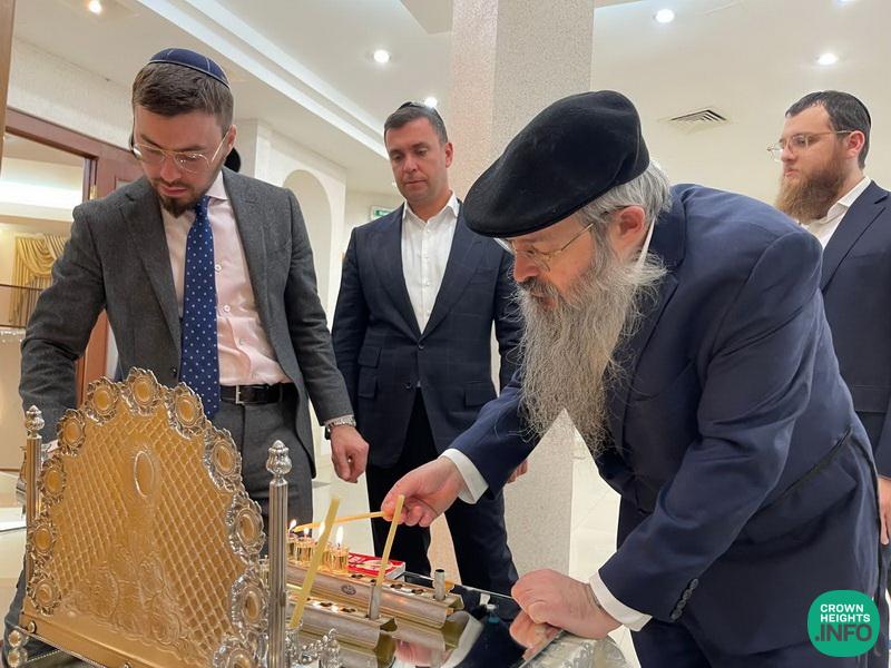 At a Chanukah party with the governors and supporters of the city later that day, deep appreciation was expressed to the governor Mr. The chief rabbi’s visit to these cities left a strong impression on the Jews of the cities, who saw and experienced that even in the frost of Siberia and elsewhere – a great flame of Jewish pride has been ignited by the Rebbe’s shluchim.