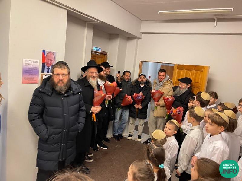After davening in the central shul in the center of the city, Rabbi Lazar a visit to the beautiful ‘Ohr Avner Chabad’ school together with Rabbi Dovid Mondshine, Chairman of the Or Avner Foundation, who accompanied him on the entire trip. The two then continued to their next destination: Novosibirsk in Siberia, to warm the city up with the light of Chanukah.