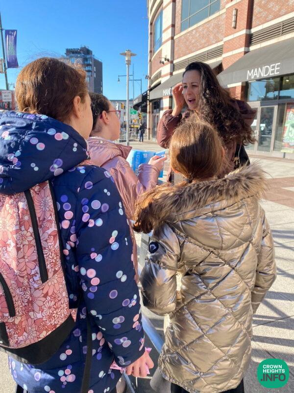 The girls are shy. It’s hard to walk up to someone they don’t know and ask them if they are Jewish. But their chaperones are there to encourage them.