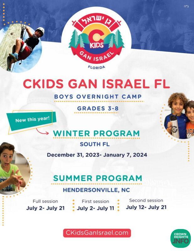 To learn more about the efforts of Ckids Gan Israel Florida, please email Rabbi Levi and Chaya Plotkin at office@ckidsganisraelfl.com or 3474460479