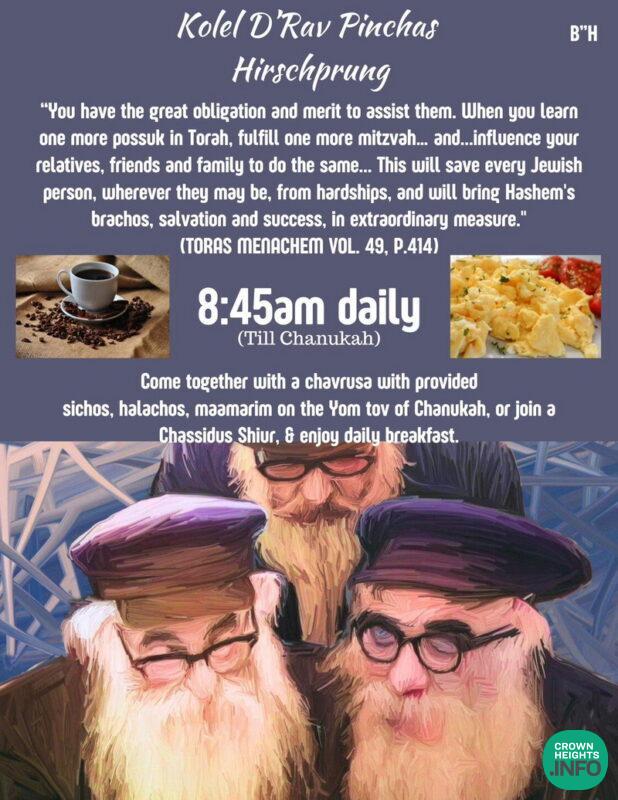For an update of Shiurim, and/or to sponsor the daily breakfast of the Kollel, please email Lichtbenji@gmail.com.