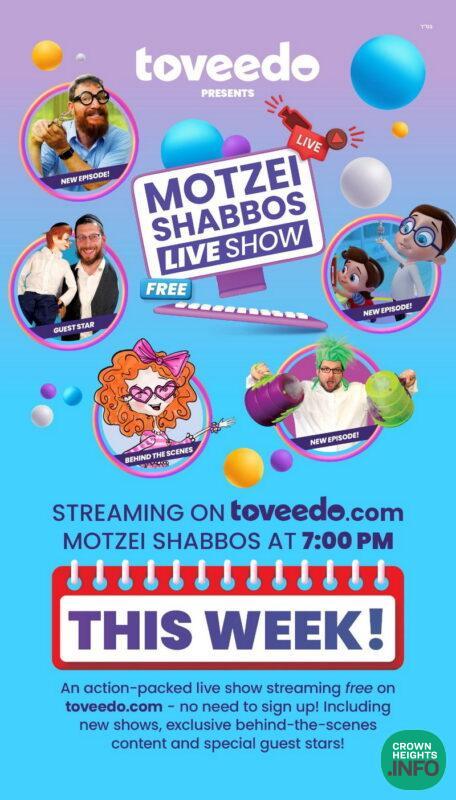 LIVE NOW: Motzei Shabbos FREE Shows at TOVEEDO