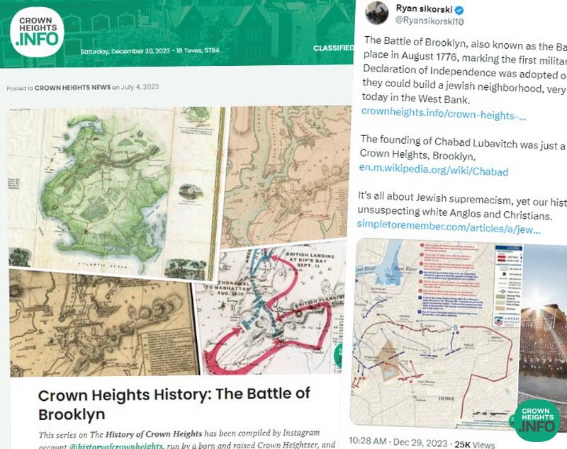 X account @Ryansikorski10 had a “revelation”, among many other extreme views posted to his social media, in that the Battle of Brooklyn, a battle of the American Revolutionary War, took place all that a Jewish neighborhood could one day be built in Crown Heights.