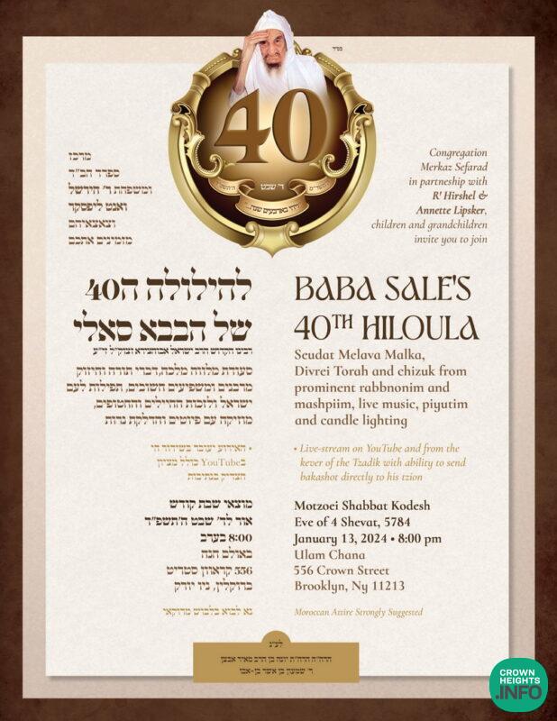 The 40th Hiloula of the saintly Baba Sali, Rabbi Yisroel Abuhatzeira זצוק”ל זי”ע, will take place this coming Motzoei Shabbat, on the eve of 4 Shevat, the day of his Yahrzeit.