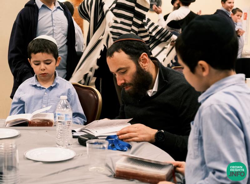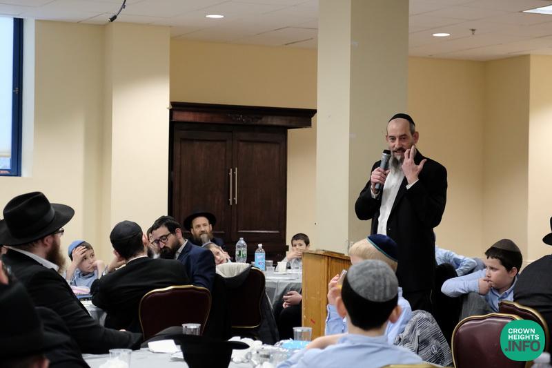 Rabbi Eli Kornfeld, Chabad Shliach at Hunterdon, NJ, shared about Yud Shvat and hiskashrus. His stories captured the attention and imagination of both fathers and sons.