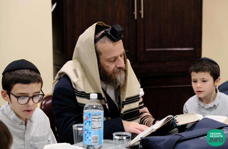The morning started with a father-son chavrusa where they learned the ma’amer of Basi L’Gani, followed by shacharis davening.