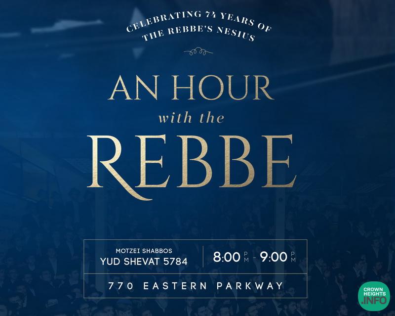 An Hour with the Rebbe is being organized this year by Mendel Braun, Zelig Greisman, Mendy Hamburger, Mendel Malek, Avremi Mintz, Levi Potash and Yossi Teitelbaum.
