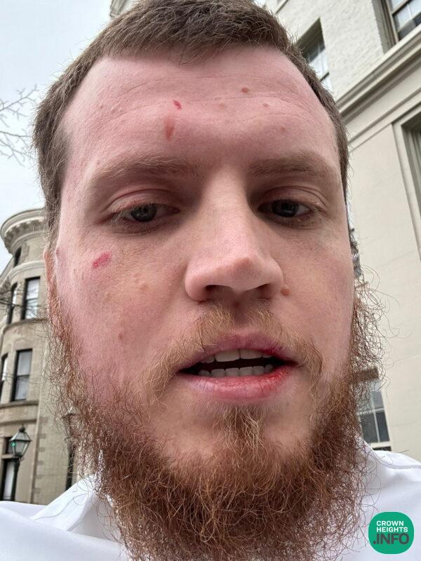 “I told him to get away from me. He punched me in the face and knocked my yarmulke knocked off. I told him to get away and ran to his car to take a picture of his license plate. He attempted to slam the door into me, and hit me with hands and keys. He hit me ear my eye; I’m lucky it wasn’t an inch higher.”