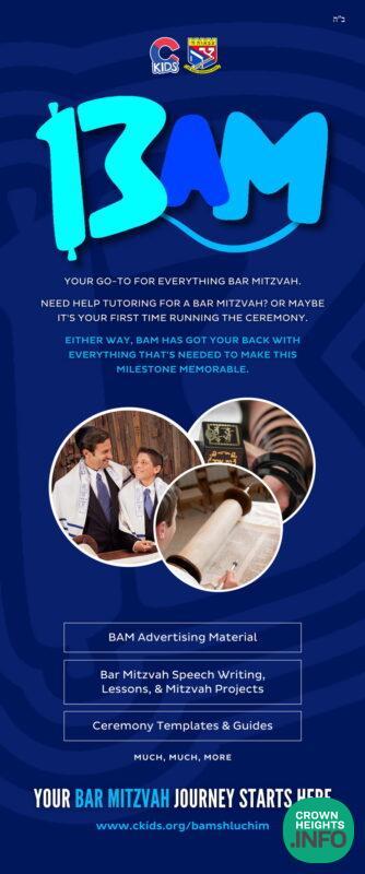 For many young Jews today, their Bar Mitzvah celebration sadly signals an end to their Jewish education. After studying and performing, it’s now time to move on. BAM, the new initiative from CKids at Merkos 302 in partnership with Tzivos Hashem, aims to address this phenomena and transform the Jewish rite of passage from a closing ceremony into the first step in a personal Jewish journey.