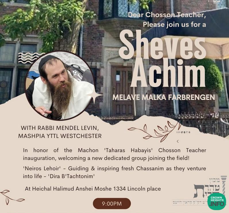 This Motzei Shabbos, בשעטו”מ, a select group of Chosson Teachers who have completed an intensive 1.5-year training program will mark a significant milestone. To commemorate this achievement, Machon Taharas Habayis is hosting an exclusive Farbrengen, featuring Reb Mendel Levin of Westchester Yeshiva, who will share his vast experience and inspire the attendees.