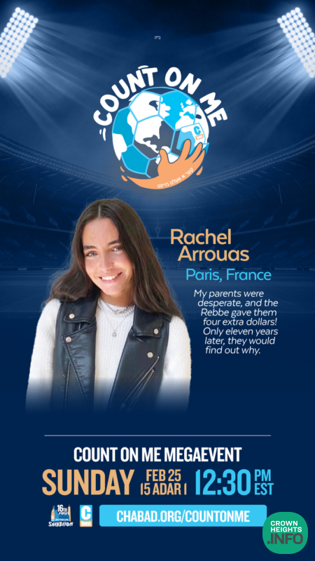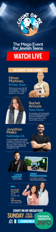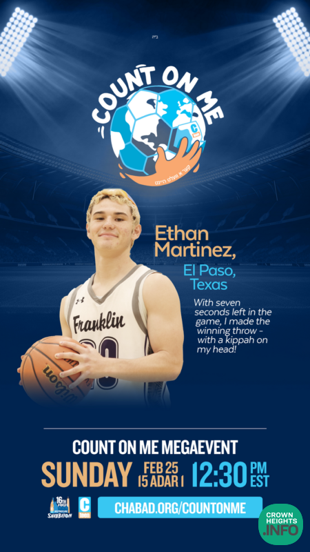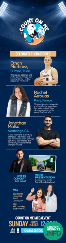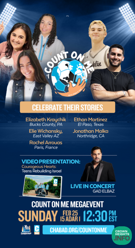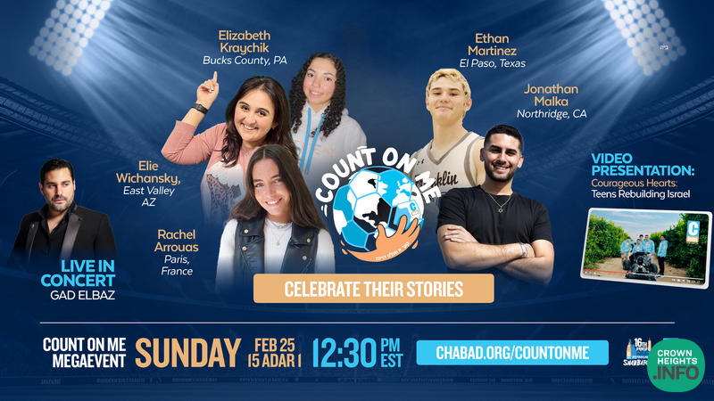 Join the “Count On Me” Mega Event today at 12:30 PM EST. Come together with Jewish teens worldwide to celebrate the resilience, strength, and unity of the Jewish people.