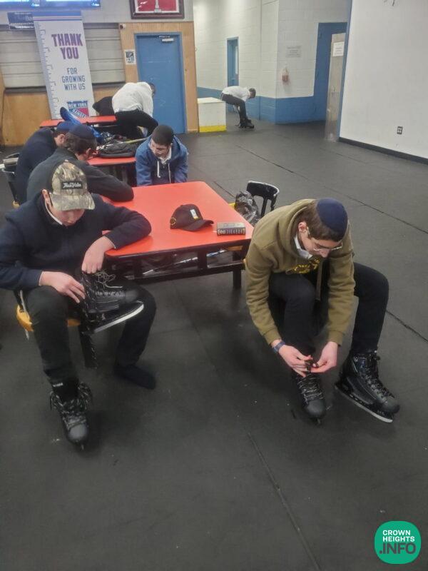 On Wednesday morning, the bochurim arrived at the yeshiva, started with the usual chassidus and shachris, followed by breakfast, and then boarded the bus. The first stop was an ice skating rink, which was a lot of fun! This was followed by a delicious pizza lunch. The non-stop action continued with a visit to a bowling alley. After an exciting round of bowling, they davened mincha and then got back on the buses.