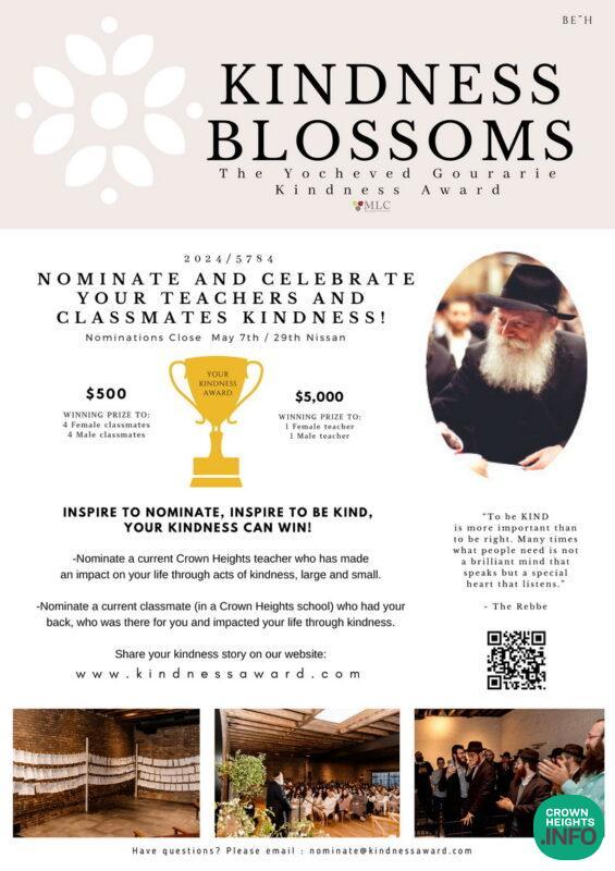 We are deeply grateful to each of you, your staff, and your students for the significant impact you have made in inspiring kindness throughout Crown Heights. Together, we are fostering a culture of compassion and empathy that enriches our community.