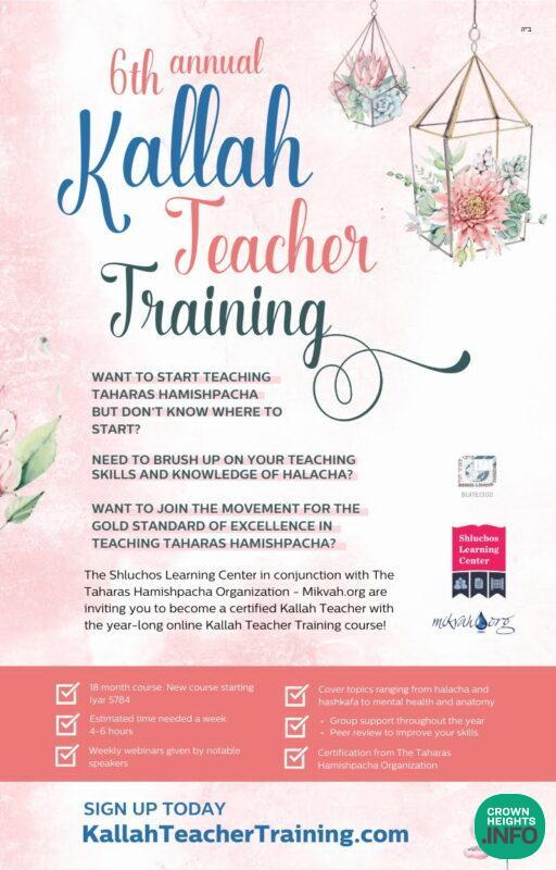 Over the past six years, more than 250 Kallah teachers have been trained by Merkos 302’s Shluchos Learning Center and Mikvah.org’s Kallah Teacher Training program. Open to Shluchos and Anash alike, the webinar course promises to provide an all-encompassing knowledge base for Kallah teachers. The 18-month extensive course leaves no stone unturned, covering Halacha, Hashkafa, Chassidus, mental and emotional health, and all topics a Kallah Teacher needs to be equipped with, culminating in certification for graduates.