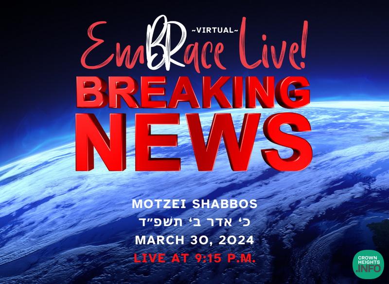 Motzei Shabbos, March 30th, 20 Adar II, at 9:15 P.M.