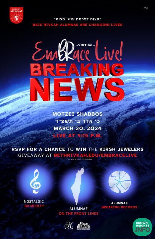 Challenge your knowledge in a fun and competitive Bais Rivkah game show, and sing along to a stunning, nostalgic Medley from 6th-grade production choirs throughout the years.