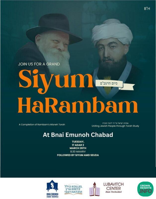 Anash and bochurim gathered in Bnai Emunoh-Chabad of Greenfield for a grand Siyum Harambam Tuesday night.