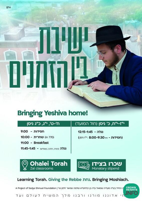 Attention all Yeshiva Bochurim spending Pesach in Crown Heights – a special Yeshivas Bein Hazmanim program is being organized just for you!