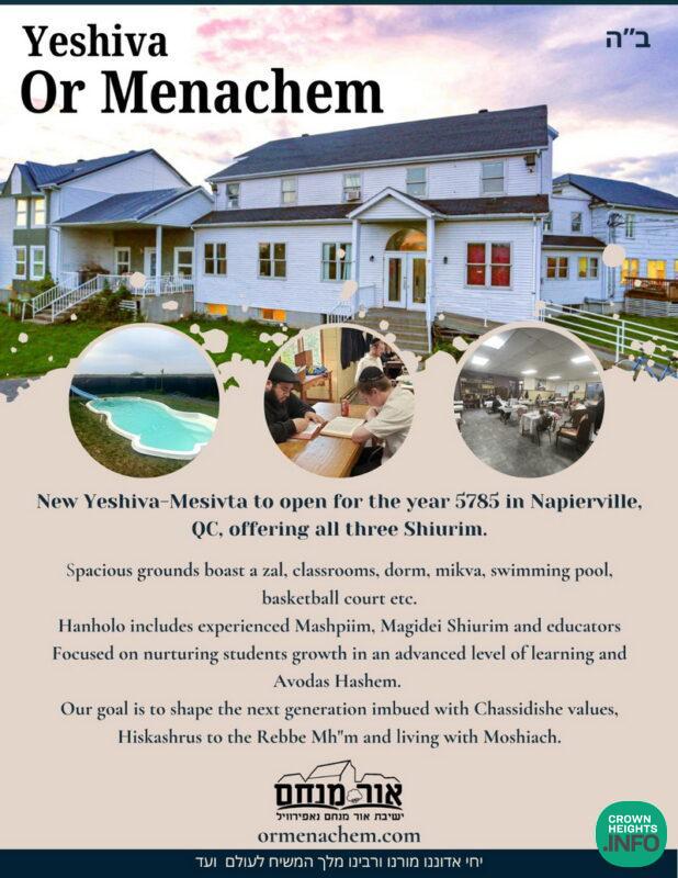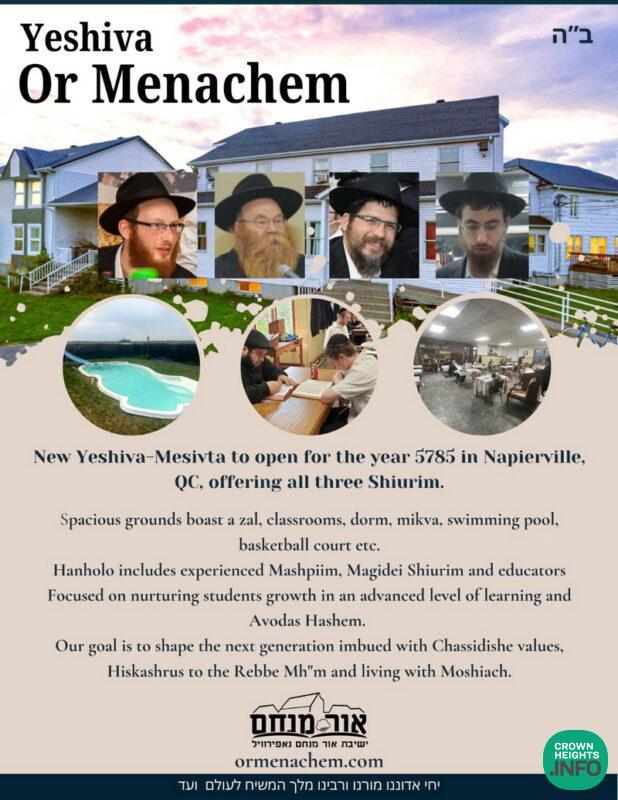 New Lubavitch Yeshiva to Open In Napierville, QC