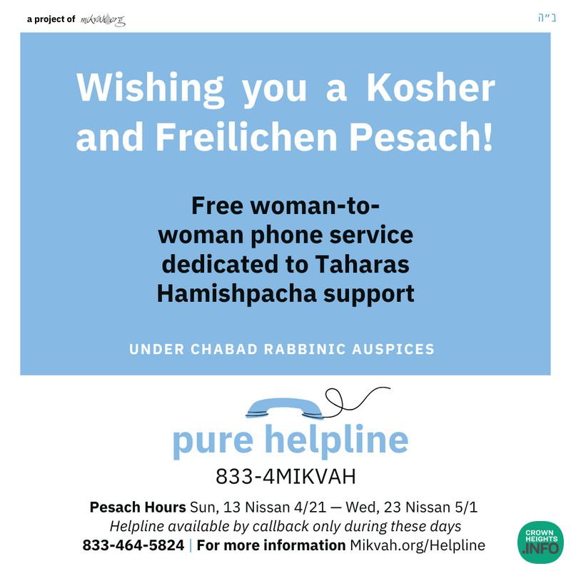 PURE Helpline Hours Over Pesach