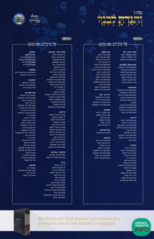 Several days before Yud-Aleph Nissan, hundreds of Bochurim around the world completed the Rebbe’s Haggadah, as part of an initiative honoring Yud-Aleph Nissan, the Rebbe’s birthday.