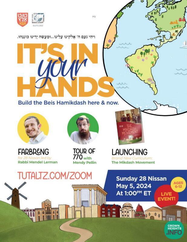 Led by Rabbi Mendel Lerman, the event will feature a remarkable behind-the-scenes tour of Beis Rebbeinu, 770, By Comedian Mendy Pellin. This engaging program is geared for the entire family 6+. The program will include a special launch of a new curriculum, “The Mikdash Movement,” all about the specialty of 770.