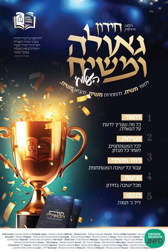 May this initiative of uniting together bring about the Hisgalus of Moshiach, with the Bochurim – ‘Der Rebbe’s Kinder’ on the front lines!