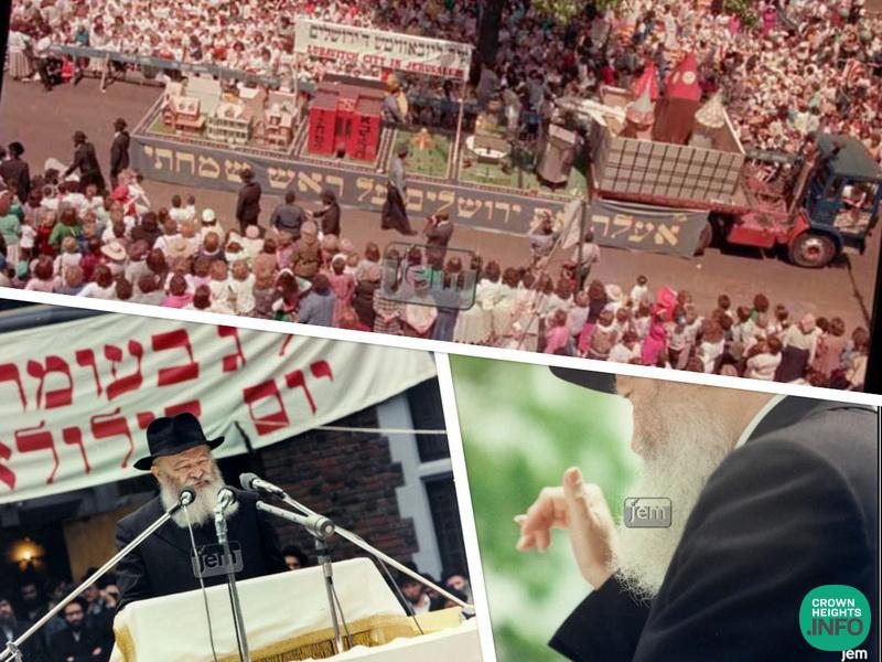 At the Rebbe’s personal request, his Sichos at the parade were broadcasted live to Eretz Yisrael, airing in Miron at the gravesite of Rashbi.