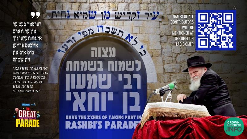 The organizers of the parade are launching a campaign to make it easy to take part in the great simcha of Rashbi by supporting the Lag B’Omer parade and celebration. Donations can be made at https://raisethon.com/parade, and the names of all contributors will be mentioned at the Ohel on Lag B’Omer.