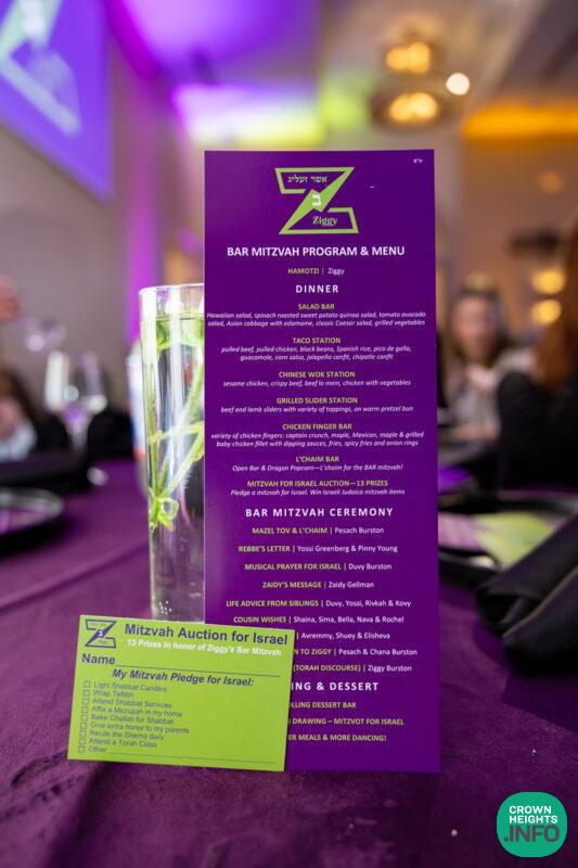 During the celebration, a special Mitzvah Auction for Israel was held in honor of the bar mitzvah. Participants were given pledge cards selecting a mitzvah for Israel, which resulted in a chance to win 13 Judaica themed prizes. Judaica items were made by Israeli artists, and included Shabbos candlesticks, a challah board and cover, havdalah set, Kiddush cup, a kosher mezuzah scroll and case, a selection of Jewish books among others.