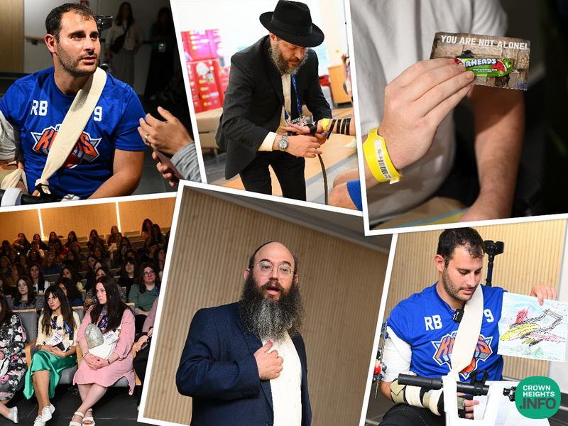 The Shluchos presented gifts to the soldiers and victims for them and their families, including letters of love and support from their children back home. They had the honor of contributing towards the honeymoon of Alon, a wounded IDF soldier, and his wife. They also gifted Saar, a wounded veteran, and his wife a sum of money towards a baby gift in preparation for their new baby on the way b’shaa tovah u’mutzlachas.